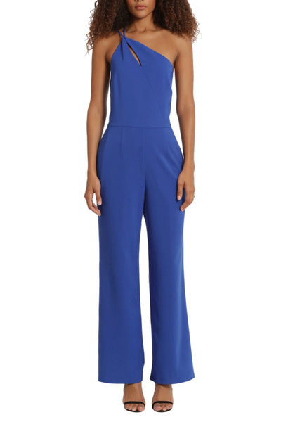 The Donna Morgan One Shoulder Straight Leg Jumpsuit combines sophisticated elegance with practical design. Its striking one-shoulder silhouette features dual straps and an intricate keyhole detail, creating a refined focal point. The streamlined straight leg cut flatters the silhouette while hidden side pockets offer functional convenience. Fully lined for comfort and confidence, this jumpsuit transitions seamlessly from weddings and cocktail events to dinner engagements and holiday celebrations. The discreet side zipper ensures a polished appearance, while machine-wash-cold care keeps maintenance effortless.