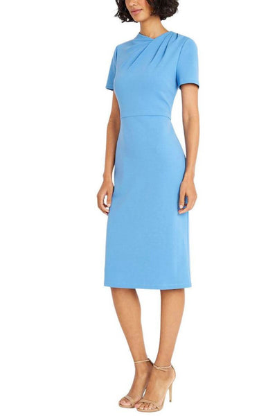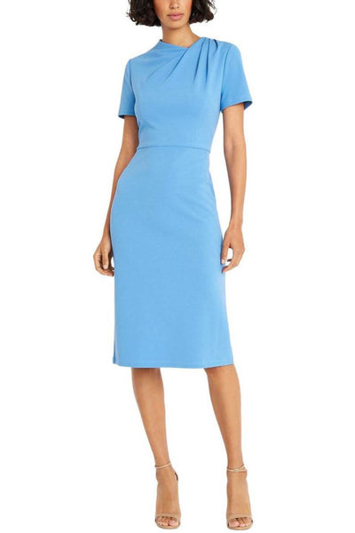 Maggy London's short sleeve midi dress combines sophisticated tailoring with modern ease. The structured pleat detailing adds dimension and movement to the silhouette, while the unlined construction keeps the piece lightweight and breathable. A discreet back zipper ensures a seamless fit. Perfect for transitional dressing, this versatile midi works beautifully for both professional settings and elevated casual occasions.