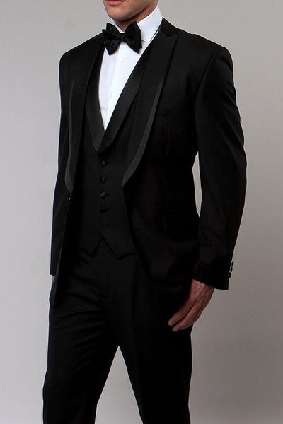 This distinguished men's premium black three-piece suit is designed to elevate your presence at any black-tie event. Crafted with meticulous attention to detail, it features a classic tailored fit that enhances your silhouette while ensuring comfort throughout the occasion. The suit includes a sleek jacket, matching vest, and trousers made from high-quality fabric, offering durability and a refined look. Perfect for weddings, galas, or formal dinners, this ensemble combines timeless elegance with expert craftsmanship to ensure you make a lasting impression.