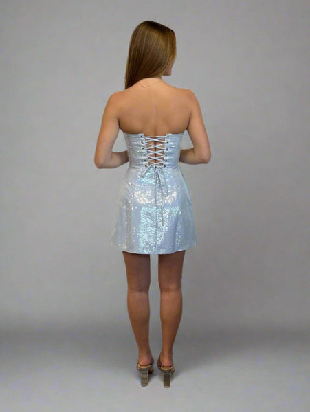 The open lace-up back adds a flirty edge, and the mini length brings the fun. Whether you're dancing all night at HOCO or going full glam for a party, Pixie is here to make sure all eyes are on you.