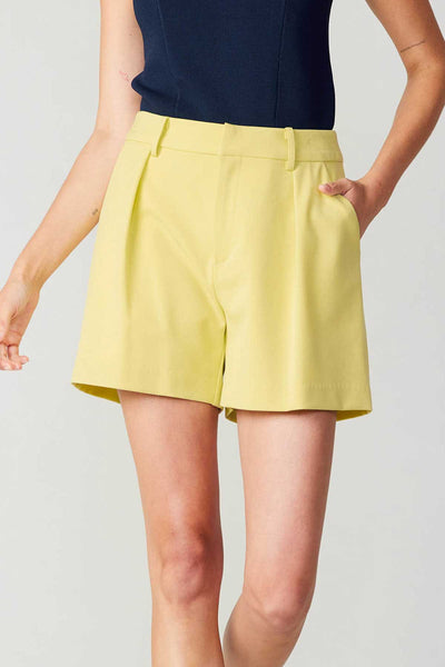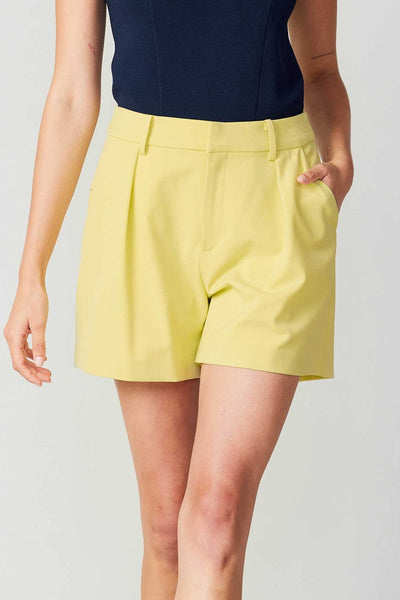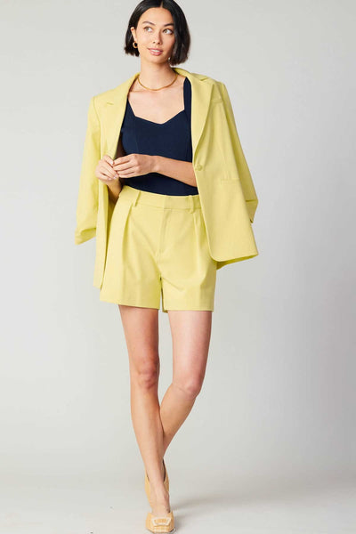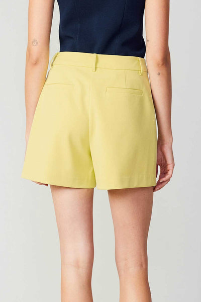 These Lemon Sherbet Pintucked Shorts combine refined tailoring with effortless comfort. Featuring expert pintuck detailing that adds subtle texture and shape, they offer a polished silhouette in a vibrant lemon sherbet shade. Crafted from lightweight, breathable fabric, these shorts ensure ease of movement and a crisp finish. Pair them perfectly with the Sherbet blazer for a cohesive and sophisticated ensemble ideal for elevated summer styling.